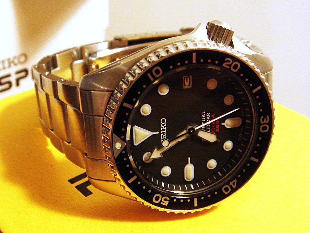 At first glance the SBCM023 looks almost like a SKX-diver but there are actually quite a lot of details that differ when you break it down. For starters it is much smaller than a regular SKX. 38mm compared to 42mm. And I really think it felt tiny. Childish almost. The thing that makes it interesting in my opinion is the movement. It's a quartz movement with a perpetual calender meaning if you set it up correct you don't have to worry about the date change every second month and it even takes leap years into account which is pretty cool. The lume markes look ridicilous. Like tiny nipples. The bracelet rattled a lot and didn't feel solid at all. I wore mine on a nato strap the few hours it got to spend on my wrist.